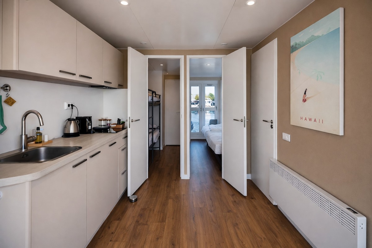 🌅 Despiértate en el agua, rodeado de tranquilidad y vistas infinitas de Vinkeveense Plassen. Una experiencia única en tu oasis privado para días de relax, nadar desde tu terraza y noches viendo la puesta de sol. ✓ Cerca de Ámsterdam y del transporte público ✓ Calefacción + buen aislamiento ✓ 35 m² / 376 pies² Visita las ciudades cercanas o disfruta de la tranquilidad del agua. Blue Mind ofrece la base ideal. A ☞ 18 minutos del aeropuerto. ☞ A 15 minutos de Ámsterdam ☞ Transporte público a 400 m