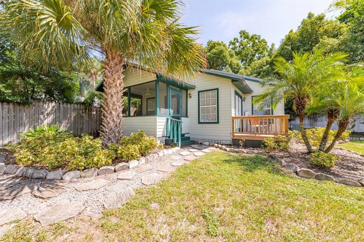 ¡A poca distancia a pie de todo lo que el centro de Mount Dora tiene para ofrecer! Nuestra encantadora casa de campo de 2 dormitorios y 1 baño de 1940 ha sido renovada recientemente. Cuenta con cocina totalmente equipada, terraza con parrilla de gas y chimenea al aire libre. Cómoda y elegante sala de estar con TV inteligente de 65 pulgadas. El dormitorio principal cuenta con cama tamaño king y TV inteligente. El segundo dormitorio tiene dos acogedoras camas individuales. Bicicletas disponibles para su uso. Tanto si vienes a relajarte, navegar, ir de compras o participar en una de las muchas festividades de Mount Dora, ¡considera alojarte aquí!