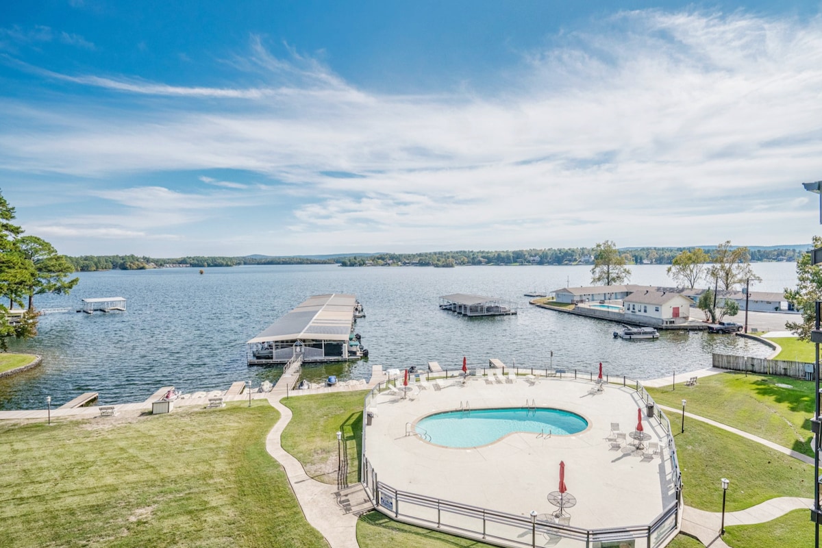 Este apartamento de 1 dormitorio/1 baño en la planta superior, RECIÉN REMODELADO, se encuentra justo al lado del agua y tiene una ubicación ideal para aquellos que quieran disfrutar de una de las mejores vistas del lago Hamilton. Incluye una cama tamaño king de felpa, 2 televisores inteligentes, parrilla, wifi y mucho más. Repleto de comodidades modernas y ampliamente abastecido para que tu estancia sea absolutamente perfecta. El balcón tiene vistas a la piscina y es ideal para tomar café por la mañana y/o bebidas por la noche. ¡Más que una ubicación, este apartamento está extremadamente limpio y a pocos minutos de todo lo que Hot Springs tiene para ofrecer!