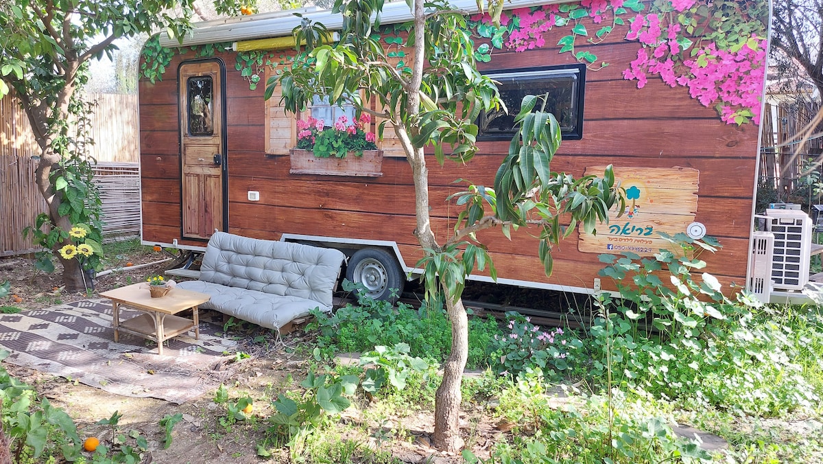 Unas vacaciones rurales pastorales en una casa rodante única y especial totalmente equipada. En una naturaleza hermosa y auténtica, aire claro y una vista abierta. Hamacas y pájaros cantando y cantando árboles grandes y gruesos que dan mucha sombra . Adecuado para parejas o una pareja más dos para familias tranquilas que buscan tranquilidad, intimidad y conexión con la naturaleza. Una experiencia de sueño de calidad y placentera, un colchón increíblemente cómodo de 220/200, a 20 minutos de Jerusalén y a media hora de Tel Aviv, junto a un bosque impresionante, aire claro, olor dulce a naturaleza mágica, donde puedes hacer senderismo, hacer un fuego. Rutas de senderismo que abren el corazón. Junto a "Man Bread", una panadería y una cafetería única y auténtica.