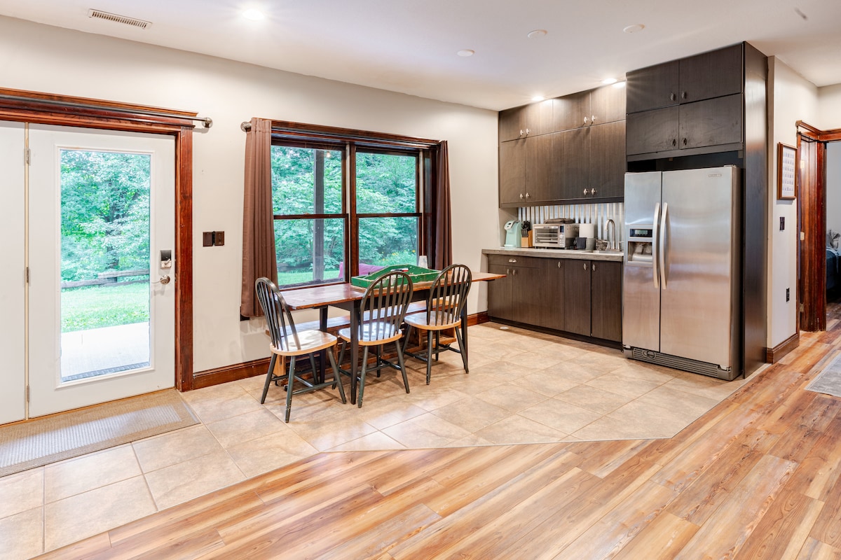Perfecto para aniversarios, cumpleaños o simplemente una escapada rejuvenecedora. Descubre por qué a los habitantes de Minnesota les gusta el invierno mientras te relajas en la bañera de hidromasaje de 104* o en la sauna de 190* mientras contemplas los árboles. ¡Incluye una cama tamaño king, sofá cama, batas exuberantes, zapatillas y numerosas comodidades para que disfrutes! Esta unidad está unida a una casa más grande (que está disponible para alquilar). Sin embargo, solo un grupo se aloja en la propiedad a la vez, ya sea alquilando este espacio más pequeño o alquilando toda la casa.