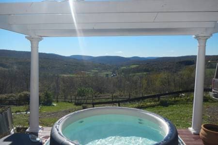 Country escape and charm on pristine rolling hills and nature. Rustic, sun filled loft in historic, restored barn. Waterfall through property. Parks abound, Energy vortex. Private building w/deck, fire pit on falls. Fantastic library. Modern amenities. From garden to wooded glen. Excellent restaurants close. Hike, bike, fish. Antiques/wineries. Prefer 2 night wknd. Holidays 2 night mandatory 90 minute NY/Phil. Lifetime memories, creatives, honeymoon.