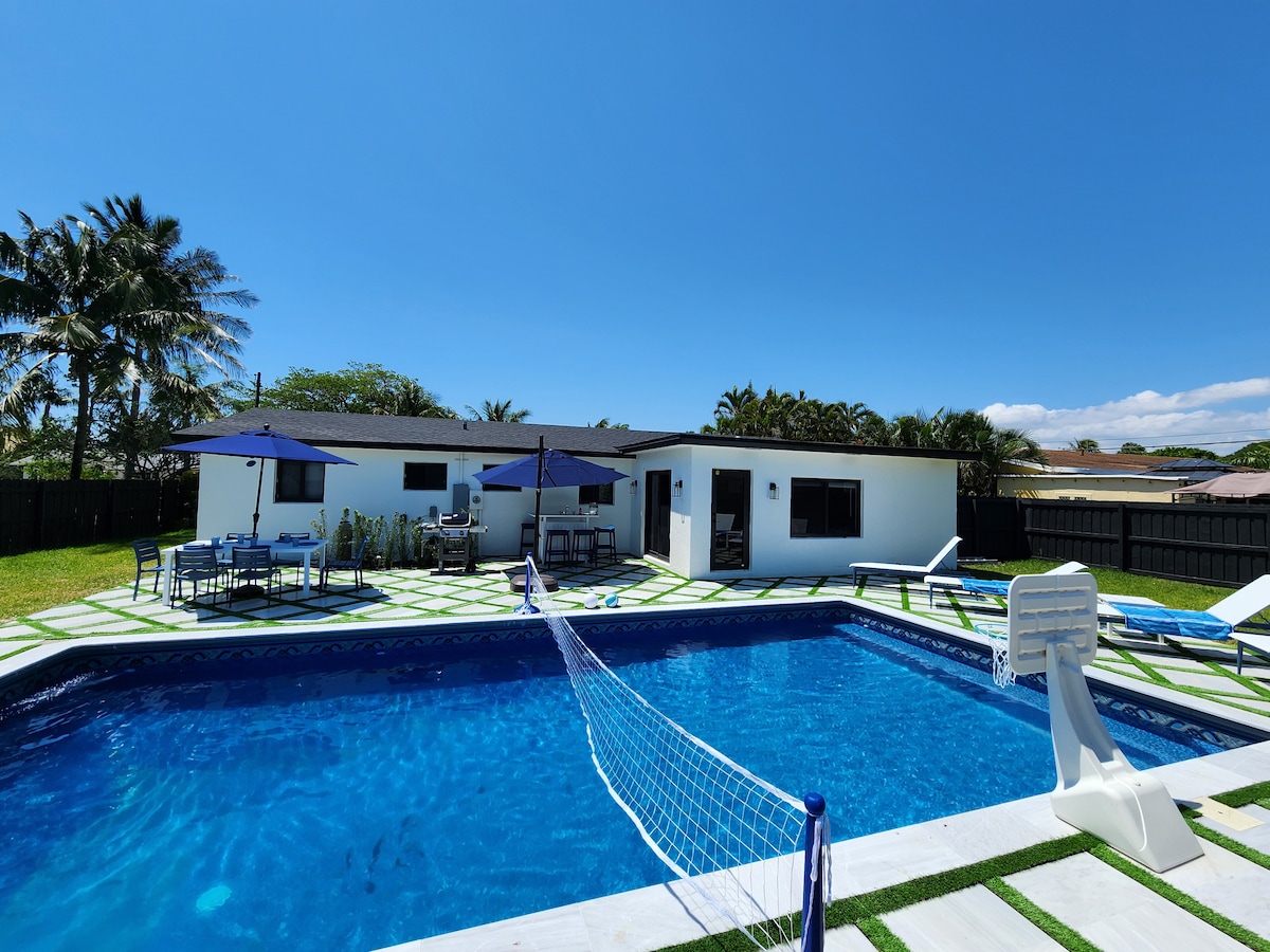 Ubicada en el barrio de los lagos del este de Hollywood, nuestra casa está a solo 2 manzanas del increíble paseo marítimo de Hollywood Beach y a 3 minutos del centro de la ciudad. Increíbles vías fluviales rodean nuestro barrio, perfectas para pasear al atardecer. Nuestra casa está superlimpia y actualizada. Disfruta de un gran patio vallado, piscina, mesa de ping pong, parrilla, cocina de gas y una cocina totalmente equipada. También disfrutarás de nuestros increíbles muebles de exterior y de un televisor inteligente de 75 pulgadas en el que podrás ver tus programas favoritos. Perfecto para relajarse.