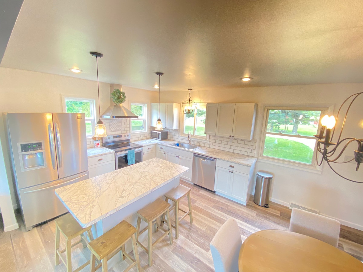 ¡Recién reformado y publicado en julio de 2021! *Pases de descuento para algunas atracciones de Dells* En este alojamiento se respira tranquilidad: ¡relájate con toda la familia! Esta granja recién reformada está convenientemente situada entre Baraboo y Wisconsin Dells. Esta propiedad tiene 3 dormitorios y 2 baños, capacidad para 10 personas, capacidad para 8 personas en camas, futón adicional y gran sección en el sótano. Está equipada con una sala de juegos en el sótano con una mesa de billar y una mesa de hockey de aire, junto con otros juegos. *Preguntar*