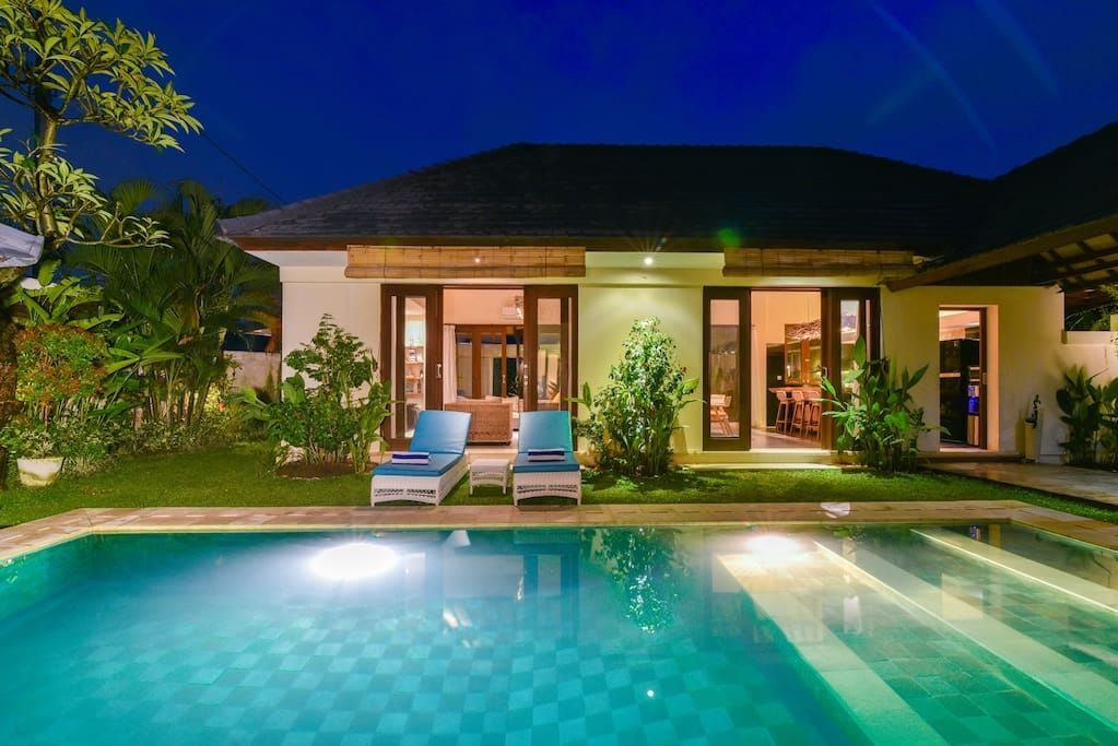 Solara Villa, ¡Villa nueva de 2 dormitorios y 2,5 baños, ubicada a solo 150 metros de la playa, está lista para darte la bienvenida con toallas de mano mojadas, agua de coco fresca y dulces locales! LO más destacable : ✔ Desayuno (Opcional) ✔ Muy cerca de la playa e ÍCONO DE BALI ✔ 2 dormitorios ( con balcón) ✔ Cocina totalmente equipada ✔ Acogedora sala de estar Televisión ✔ inteligente, wifi Dispensador de agua ✔ potable ✔ Jardín (piscina, ducha, tumbonas, bar de la piscina) ✔ Estacionamiento gratuito ✔ Aire acondicionado ¡✔ Se admiten niños! ¡Más información a continuación!