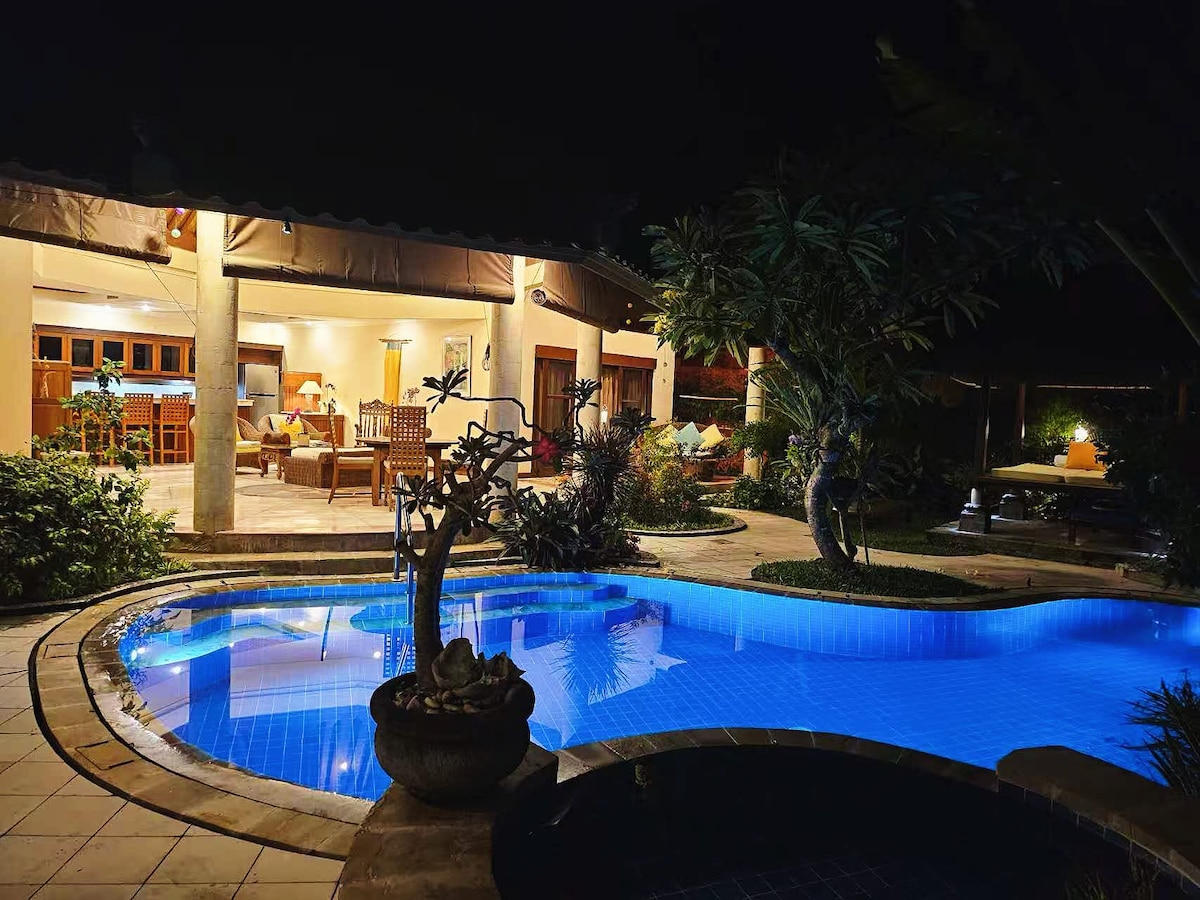 ¿Viajas con un grupo de más de 6 personas y esperas una villa espaciosa y lujosa, pero asequible? ¡Entonces esta es tu única oportunidad! - Una propiedad de 1300 metros cuadrados, ¡solo para ti! - 4 dormitorios, todos con baño, ¡2 con piscina privada! - 3 piscinas. - Cerca de la playa de Sanur - Transporte gratuito. - Vista a la selva. - Ropa de cama de calidad. - impecable y bien mantenido - Desayuno incluido. Este es el lugar ideal para compartir momentos especiales con tu familia de vacaciones, ¡de una manera elegante y lujosa! ¡Reserva y disfruta, mientras somos nuevos en Airbnb y tenemos un precio promocional!