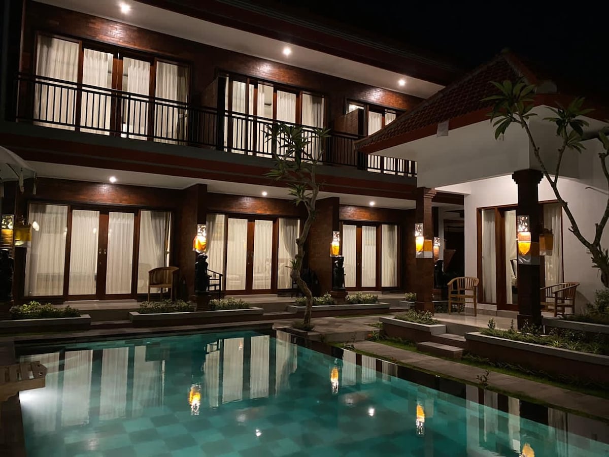 ¿Viajas con un grupo o una familia? Podemos alojar hasta 14 huéspedes. Si buscas un lugar lejos del ajetreo y el bullicio, pero cerca de Ubud, ¡nuestra villa es para ti! La cascada de Tegenungan está a solo 10 minutos, el parque de mariposas Kemenuh a solo 5 minutos y el mercado de Ubud está a unos 20 minutos. La casa del estadio Bali United Kapten I Wayan Dipta a solo 15 minutos. Proporciona: -Biscina privada - Wifi gratuito. - Baño privado con ducha de agua caliente. - Habitación con vistas a la piscina con aire acondicionado. - Propietario/personal amable y SERVICIAL
