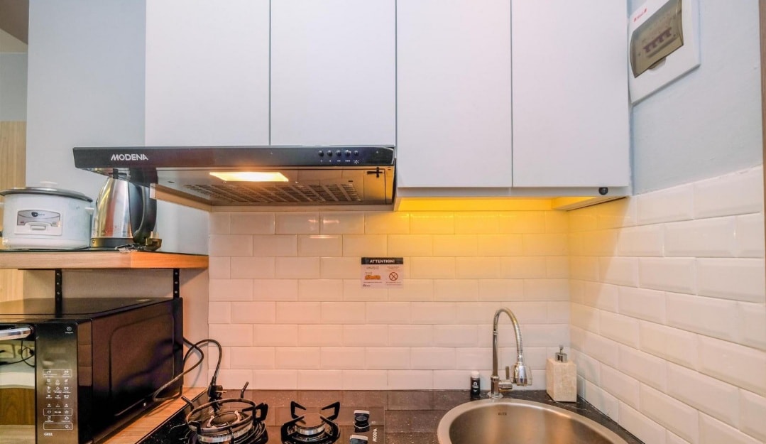 La unidad de estudio limpia con un moderno diseño de loft industrial proporciona más espacio, incluido el trabajo. Amueblado con aire acondicionado, cocina lista, calentador de agua con calentador de agua y TV de pantalla grande. También es adecuado para alquileres de larga duración. En la zona verde con hermosa vista a la montaña y aire limpio. Seguridad las 24 horas del día, los 7 días de la semana, vecindario seguro y tranquilo. A poca distancia a pie a la famosa mezquita At-Thohir, acceso a una tienda de conveniencia y lavandería. Autobús de traslado a la estación de MRT Harjamukti, Blok M, Kuningan y Harmoni. Tu estancia será agradable.