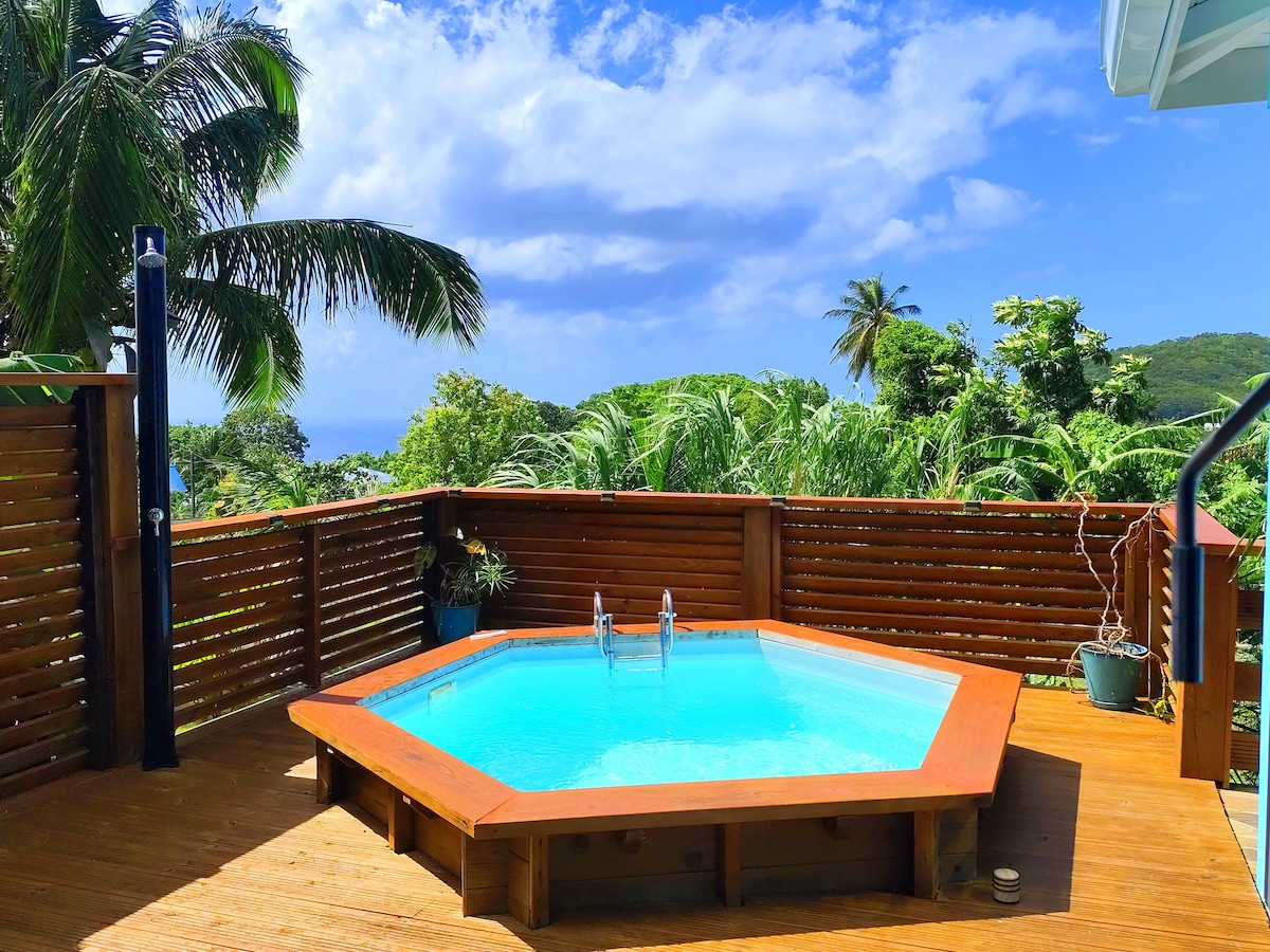 Bungalow Corossol cerca del mar, piscina, vistas al mar.