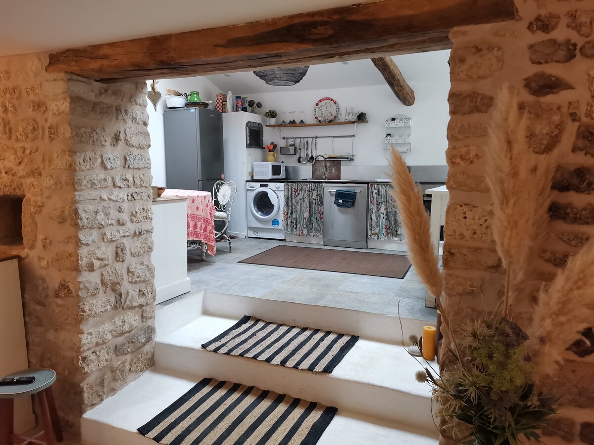 Relax in this traditional stone-built ground floor apartment with stylish, contemporary kitchen, bathroom. Enjoy the cosy log fire or alfresco dining in the courtyard. Large double bed and further double sofa bed. The house is situated in a small hamlet a few minutes from the historic market town of Melle and an hour's drive from the stunning city of La Rochelle, the apartment ideally situated for exploring both country and seaside. Quite pets only