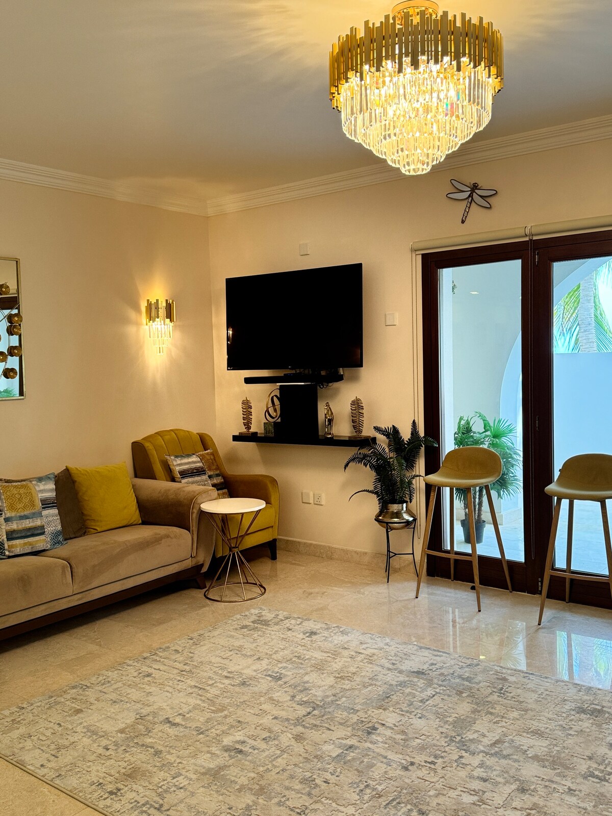 Apartamento de lujo con total privacidad y hermosas vistas a las plantaciones de narguil de Dhofar. Nuestro apartamento de lujo es tranquilo y elegante, y es un apartamento espacioso para familias pequeñas. Además, los huéspedes pueden utilizar todas las instalaciones del hotel, como la piscina, el gimnasio, la pista de tenis, el spa, la peluquería, los restaurantes y las cafeterías, a precios simbólicos y reducidos. Nuestro apartamento de lujo está situado en la zona de Al Saada, a unos 5 minutos en coche de la playa de Daharis y a unos 4 minutos en coche y 15 minutos a pie del centro comercial Grand Mall.