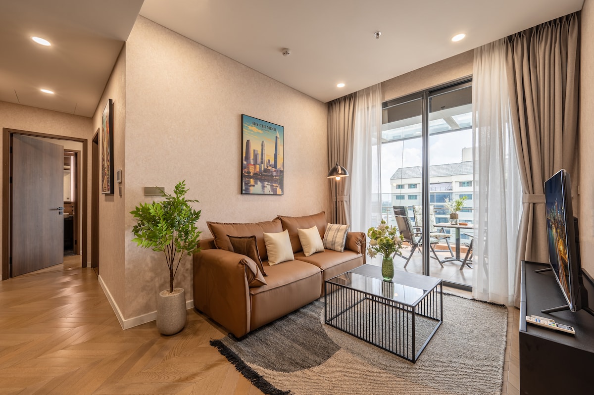 🌿 Experience breathtaking fireworks without the crowds, right from the comfort of your home. Relax with a glass of wine as the sky lights up — a truly unforgettable stay. 🌿 This spacious 2-bedroom corner apartment in Diamond Island, offers a serene escape with breathtaking views of the Saigon River and the shimmering city skyline — where you can witness both the peaceful sunrise and the golden glow of sunset right from your balcony.