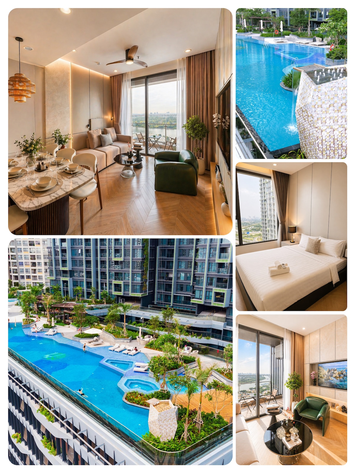 Apartamento ideal para viajeros de negocios, totalmente amueblado Escapada de pareja a corto plazo – Privada, cálida Elección perfecta para unas vacaciones en Ciudad Ho Chi Minh Apartamento de corta duración cerca del centro, adecuado para turistas. Piscina de natación infinita Gimnasio y estudio de yoga totalmente equipados Parque verde junto al río Zona de barbacoa y parque infantil Supermercado, restaurantes y cafeterías Spa y bienestar, sala comunitaria Seguridad 24/7 y gestión profesional Comunidad de residentes civilizada y amigable