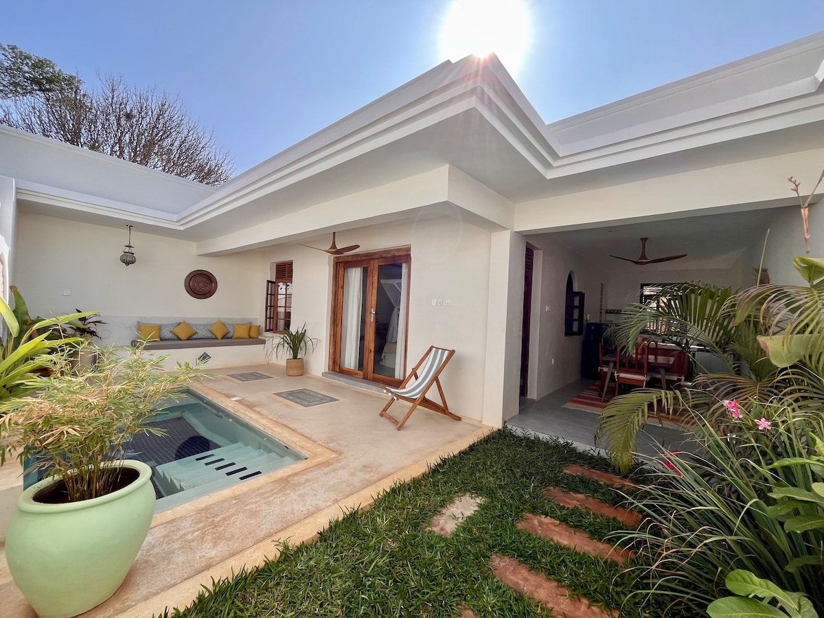 Mlima Cottage cuenta con una ubicación privilegiada y un diseño, tanto en interiores como en exteriores. Mlima está situado justo en la primera fila del Océano Índico, y ofrece impresionantes vistas al mar desde todas las terrazas. En la terraza encontrarás un comedor, un salón y tumbonas y, por supuesto, acceso directo a la playa a través de tu propia escalera privada. En el interior, la casa cuenta con dos amplios dormitorios con baño privado y vistas al mar, así como comedor, sala de estar y cocina.