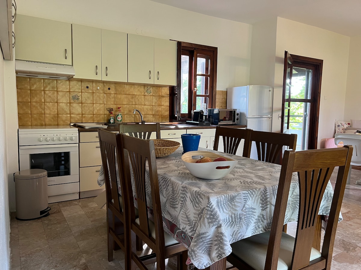 Dos apartamentos independientes y espaciosos con un estilo único y todas las comodidades modernas se encuentran en una propiedad de cuatro acres con un exuberante jardín. La propiedad se encuentra a solo 100 metros de la hermosa playa de Vourvourou. Ambos apartamentos comparten un gran patio, ideal para familias y amigos. La casa está totalmente equipada con dos cocinas, tres dormitorios, un salón, una terraza, un patio y una zona de barbacoa totalmente equipada. Tiene capacidad para 10 personas. Los huéspedes disfrutan de total independencia y privacidad.