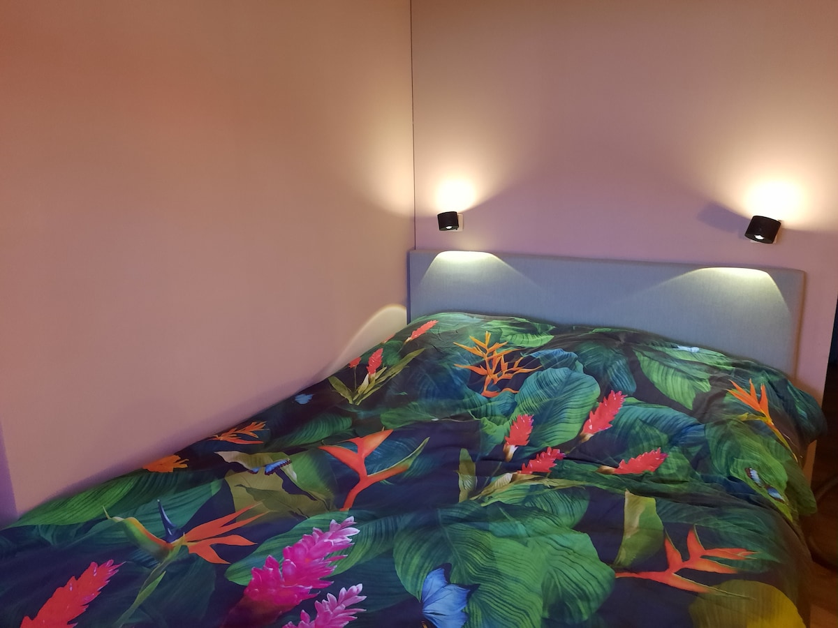 ¿Te gusta el ajetreo de la ciudad, pero te gustaría volver a un lugar tranquilo al final del día? En la casa de huéspedes de nuestro jardín, puedes disfrutar de un entorno verde, tranquilo y relajado después de un día ajetreado en Ámsterdam. Relájate y desconecta en este espacio tranquilo y elegante para 2 personas. Una cocina completa, un baño y un dormitorio están a tu disposición. También hay WiFi y puedes transmitir tus series favoritas en la televisión. ¡En 20 minutos estás en Ámsterdam en transporte público o bicicleta!