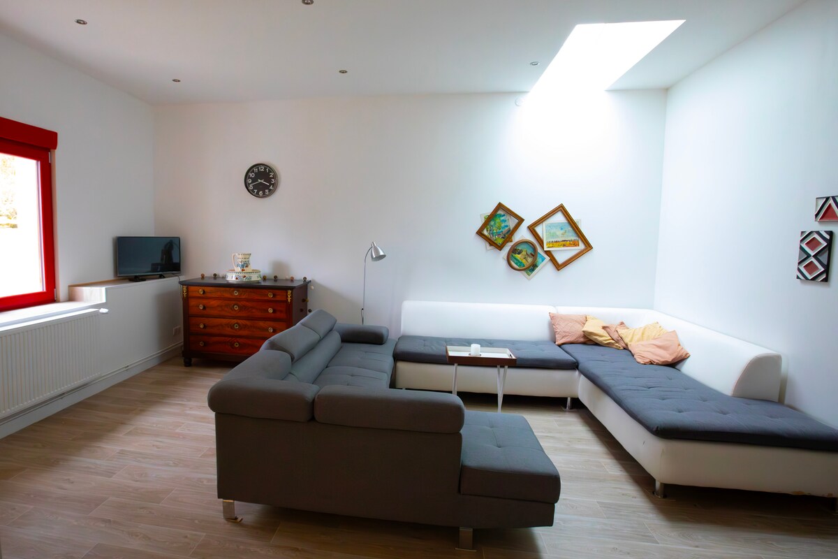 La casa, amueblada con 3 estrellas, consta de una sala de estar con una cocina abierta totalmente equipada. Desde el salón tendrá vistas a la naturaleza a través del ventanal. Arriba hay un dormitorio con una cama de 160 x 200, un baño con ducha y una lavadora. En el altillo hay una sala de estar muy bonita y acogedora, que se puede convertir en una cama de 160 cm x 200 cm o 2 camas de 80 cm x 200 cm, con televisión. Acceso wifi. La casa es para no fumadores. El alojamiento incluye escaleras para acceder a las habitaciones