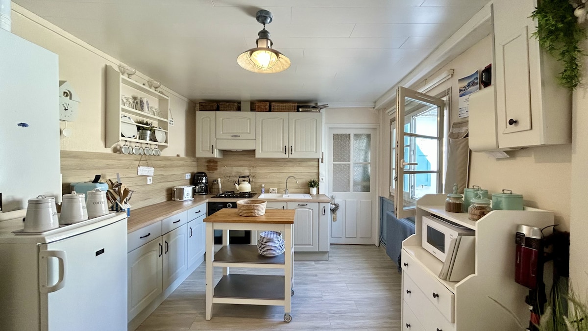 Esta encantadora casa de pescadores, con su pequeño jardín cerrado y soleado, completamente renovado y decorado por un arquitecto, le da la bienvenida. Disfrutará de su patio/terraza soleada. Situada en el centro de la ciudad, cerca de tiendas y restaurantes, se encuentra en una pequeña calle tranquila, detrás de la iglesia. La playa está a solo 100 m, frente al imprescindible Hôtel des Tourelles. Descubrirá servicios de alta calidad y una comodidad absoluta.