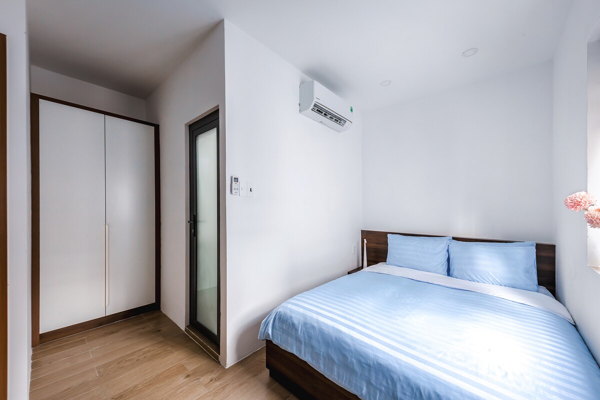 ¿Buscas un remanso de paz en el corazón de Saigón? Nuestro estudio 𝐄𝐱𝐞𝐜𝐮𝐭𝐢𝐯𝐞 𝐩ara dos está diseñado para ofrecer el máximo relax. Imagina despertarte en un espacio recién renovado, bañado en tonos blancos y azul cerúleo pastel, con una gran ventana con vistas a una calle tranquila y a la impresionante iglesia de Nuestra Señora del Perpetuo Socorro. Disfruta de suelo de madera de primera calidad, baño moderno, TV con Netflix, minibar, lavandería gratuita y cocina compartida. Perfecto para estadías cortas o largas. Disfruta de la comodidad y la conveniencia.