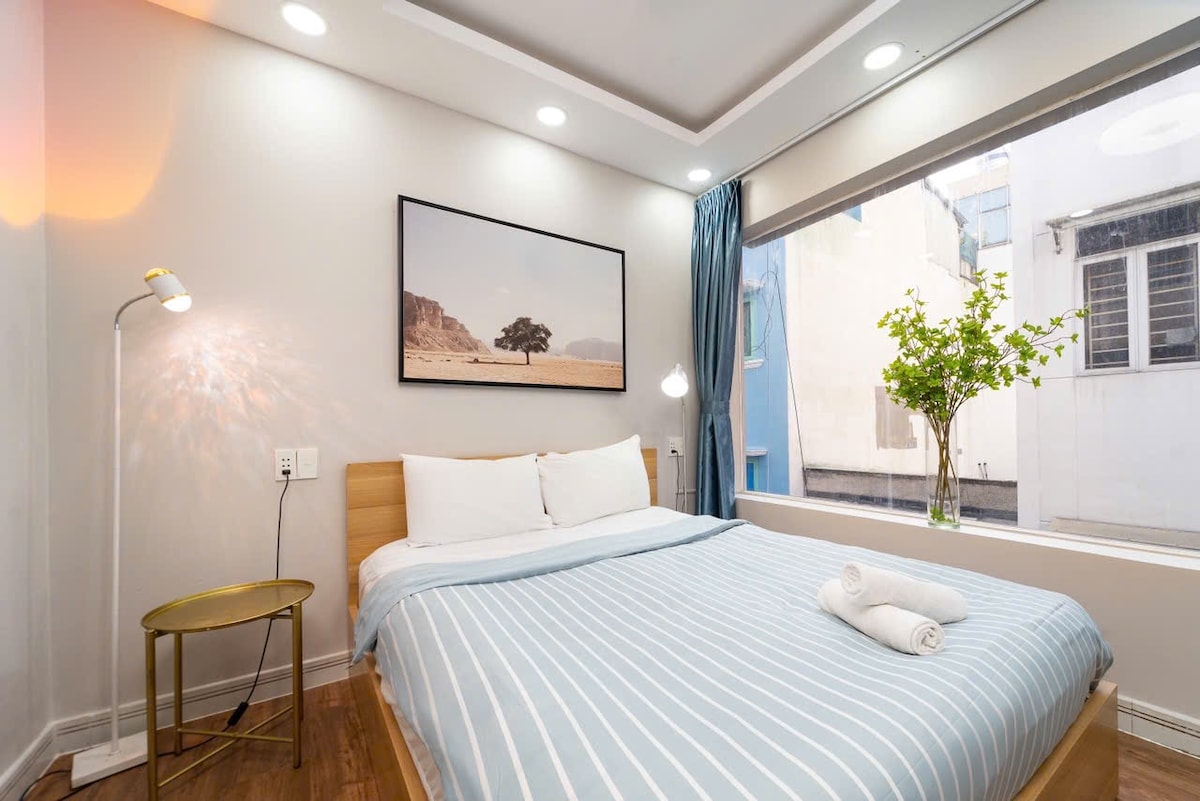 Bienvenido a nuestro nuevo estudio que combina un estilo acogedor y boho. Tu familia estará cerca de todo cuando te hospedes en este lugar céntrico - Situado en el corazón de Ho Chi Minh, es tranquilo tanto de día como de noche debido a que está en el cuarto piso. - Disfrutar de una vista impresionante desde la gran ventana que da a la calle. Parecía las fotos, lleno de comodidades necesarias, sobresaliente por proyector Full HD - Sin toque de queda - Accesibilidad 24/7 con instrucciones claras - Wifi privado de alta velocidad, totalmente climatizado