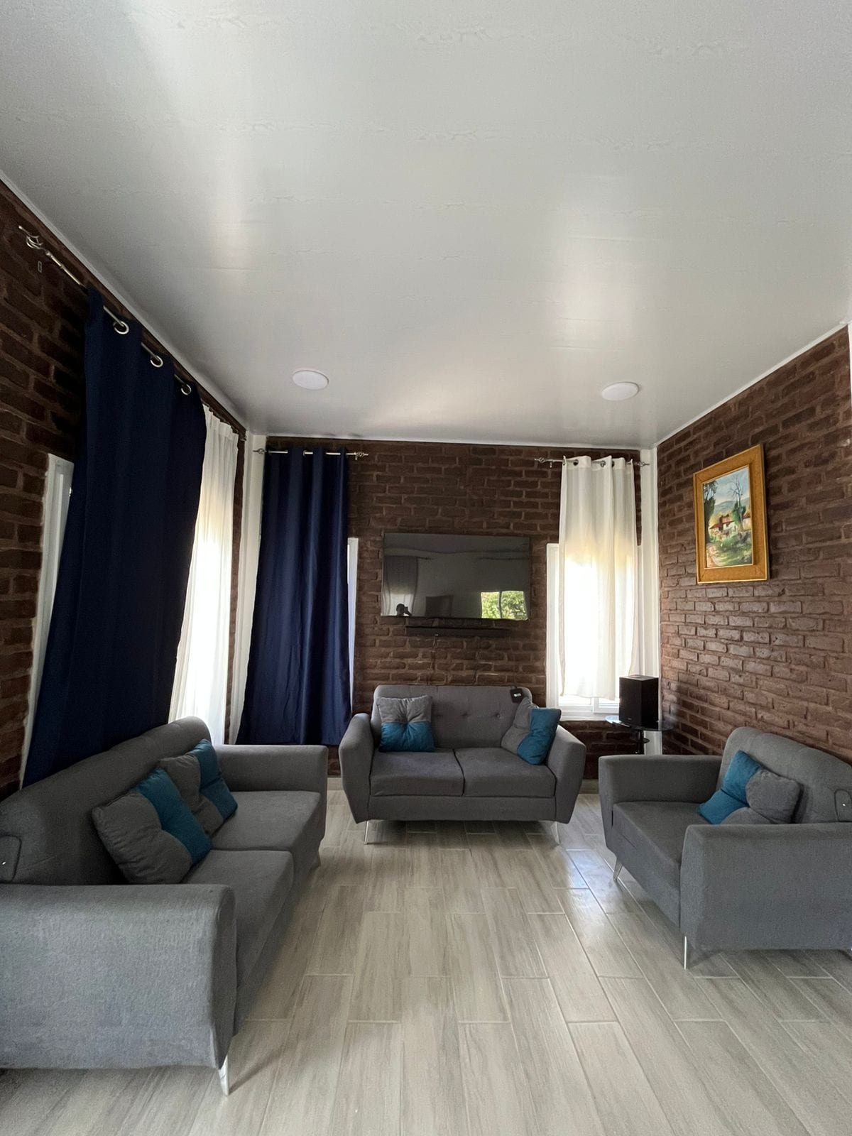 Este elegante alojamiento es ideal para viajes en grupo, en pareja y eventos. Contamos con variedad de ambientes, áreas verdes, fuera de la ciudad, aire puro. Kidush es muy accesible, es una casa muy espaciosa, segura.