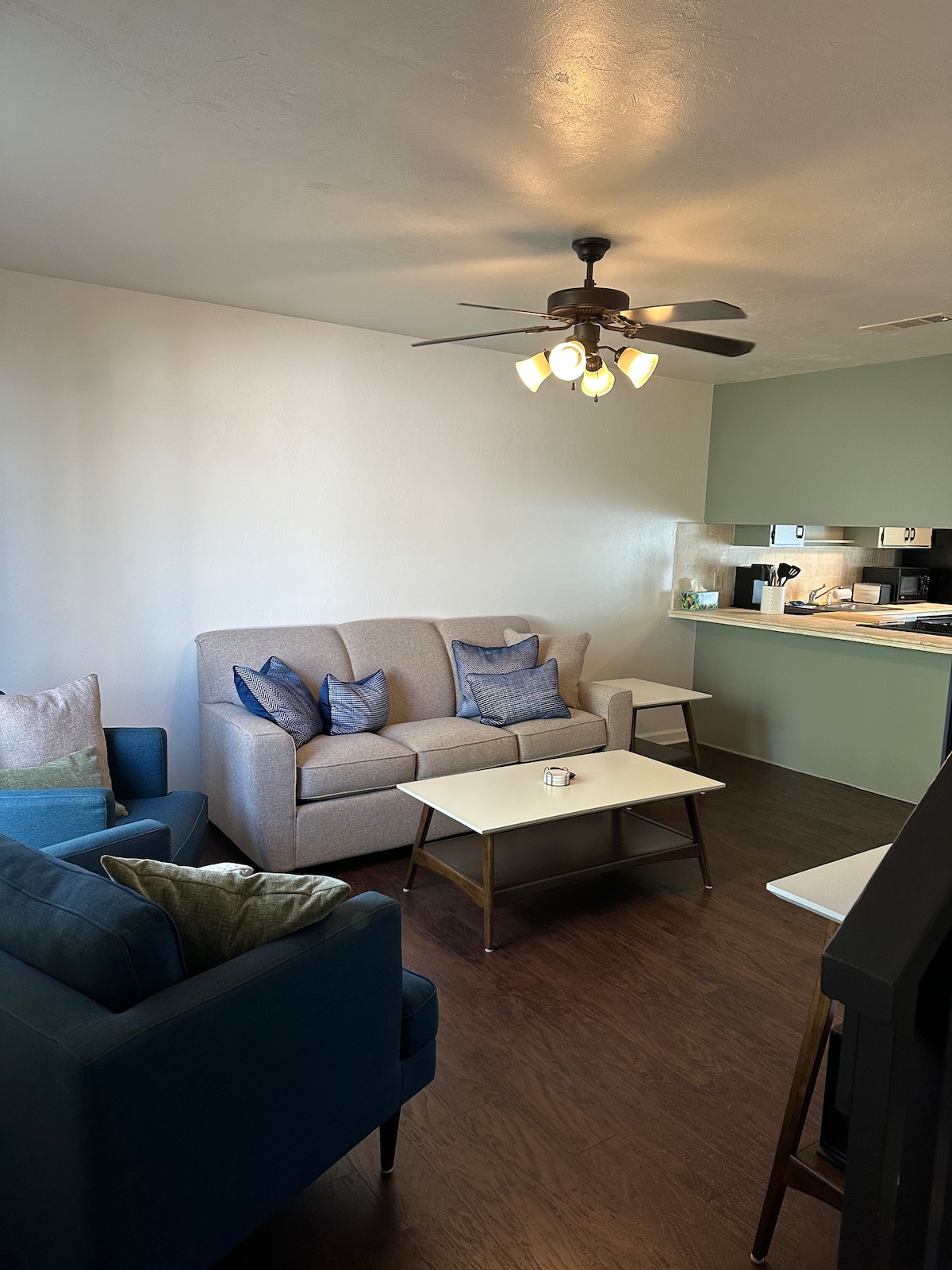 Disfruta de una escapada en esta casa adosada limpia y moderna, convenientemente ubicada. Con 2 dormitorios: uno con una cama tamaño king y otro con 2 camas tamaño queen. Cada dormitorio tiene un televisor inteligente Roku. La cocina para comer cuenta con una cafetería y una selección de té, mesa de comedor para 4 y 3 taburetes. Aparcamiento reservado para 2 coches. A 10 minutos a pie del estadio Doak. También está cerca del centro, el centro de convenciones, restaurantes, el aeropuerto, Collegetown y todos los campus. ¡Ven a ser nuestro huésped! (NO FUMAR en el interior)