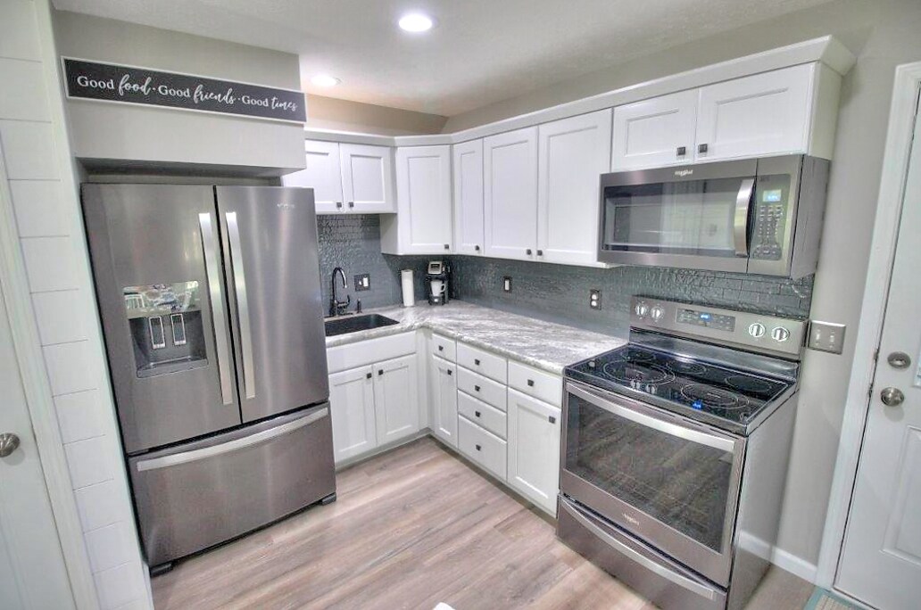This newly remodeled home offers 3 bedrooms, 2.5 bathrooms and a second level deck to enjoy views of the lake. The living room is equipped with a Smart TV for those needing a break from the sun or to unwind at night. The kitchen provides all the comforts of home to cook. The outdoor space is plentiful including a large, covered patio with a grill, sand beach, firepit area and dock. Paddle boat, kayaks, life jackets and a swim mat are provided. Washer and dryer are provided!