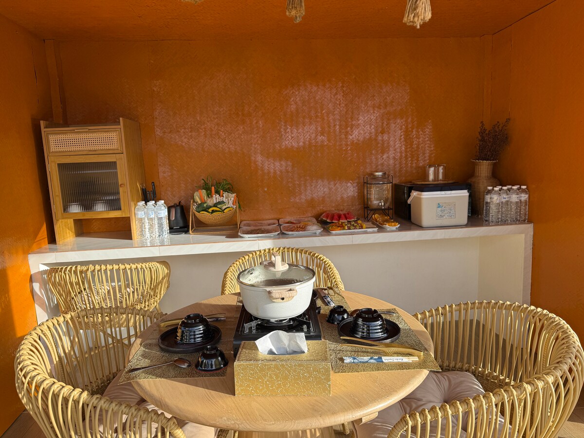 Bienvenido a nuestra elegante y tranquila cabaña situada en el corazón del abrazo de la naturaleza. Un tranquilo escape del bullicioso mundo, este encantador refugio es el santuario perfecto para aquellos que buscan consuelo y serenidad. La cabaña se abre a una terraza privada con impresionantes vistas al arrozal circundante, ofreciendo el lugar perfecto para tomar el café por la mañana o observar las estrellas por la noche.