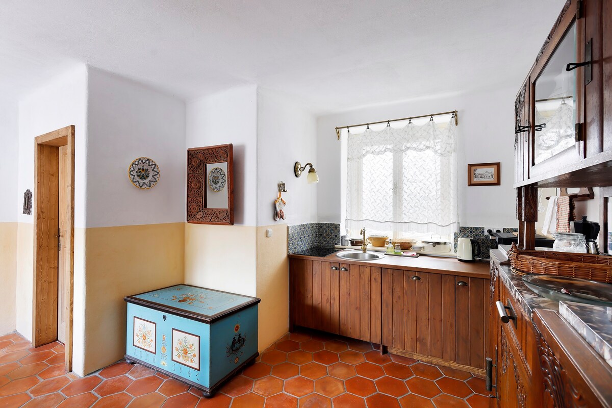 Para todos los admiradores de Bohemia del Sur ofrecemos alojamiento en una antigua casa de pastor de unos 200 años, recientemente renovada. La casa tiene todas las comodidades y espacio para 4 visitantes. Toda la casa está a su disposición, dos habitaciones y media, una hermosa estufa de azulejos, sobre cuyo funcionamiento estaremos encantados de proporcionarle información más detallada. Cocina totalmente equipada, baño, lavadora, wifi potente. Pequeño jardín con terraza, también hay una parrilla Weber