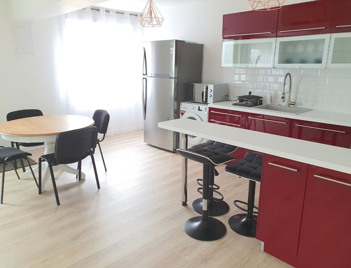 🌿 Kenna’s Cocoon welcomes you 📍 In the heart of Dompierre-sur-Besbre. Ideal for a stopover, a business trip or a relaxing stay, the apartment combines comfort, calm and practicality. 🛒 All essential shops are within 100 m (bakery, supermarket, tobacconist, bank, dining options). 🚗 Free and easy street parking. ☁️ Enjoy a peaceful stay in the heart of the Allier.