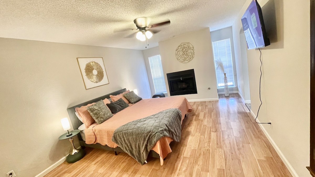 Nuestro alojamiento ofrece comodidad, relajación y conveniencia en un entorno decorado de manera acogedora. Tres habitaciones ofrecen varias opciones para dormir para satisfacer todas tus necesidades. Elige entre una cama tamaño king, queen o dos camas individuales. La cocina totalmente equipada y cuidadosamente diseñada satisface todas tus necesidades de comida. Lujoso patio trasero con sillas Adirondack, chimenea de gas, mecedoras en el porche y juego de comedor al aire libre que permiten relajarse y socializar. Lavadora y secadora disponibles, detergente y suavizante de telas incluidos.