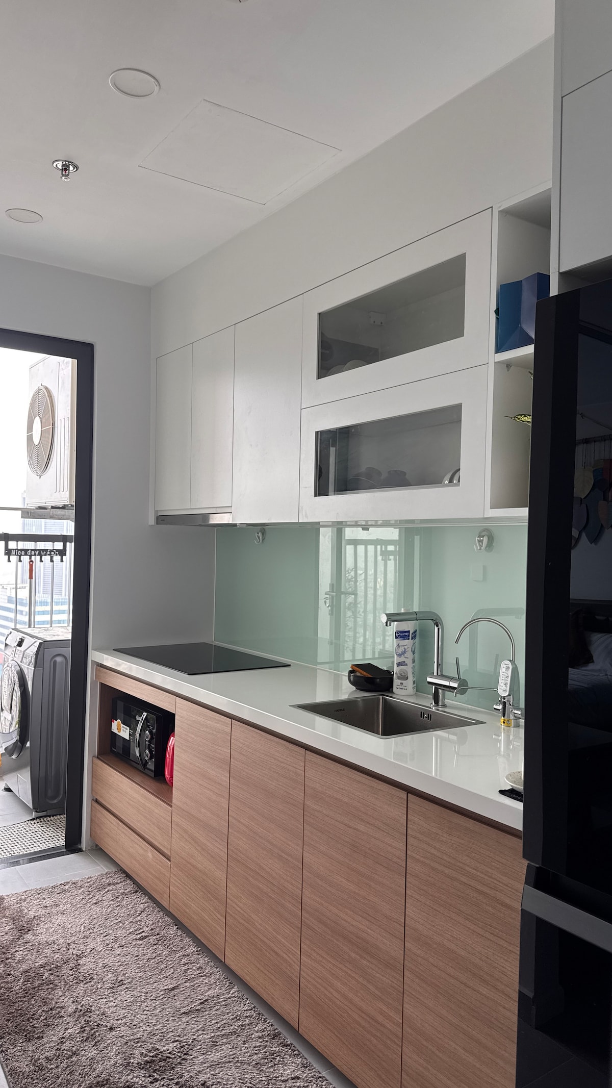 Alley No. 1 29/50 Alley 213 Giap Nhat (justo después de Royal City) – era Apartment. Habitación estudio Balcón luminoso, cama doble, sofá y mesa de té. Cocina separada con fregadero, armarios, grandes ventanas. Servicios: aire acondicionado, proyector de películas, agua caliente, wifi. El edificio tiene ascensor; el área de lavandería-secadora es compartida. Adecuado para 1–2 negocios/turistas, caminando a Royal City, fácil de mover.
