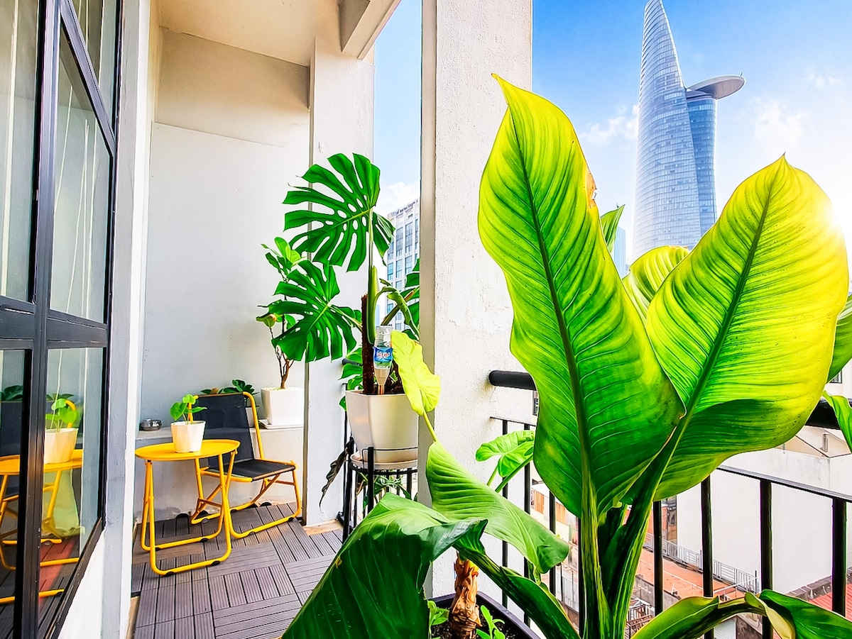 Fall in love with our Japanese-inspired studio in downtown Saigon! The stunning space features exposed columns, curved walls and a unique glass ceiling that fills the hallway with sunlight. Relax at the small garden and coffee lounge at the back. The unit is equipped with a luxurious bed, full kitchen, Netflix, toilet with bidet, and bath essentials—all the ingredients for a perfect stay ;)