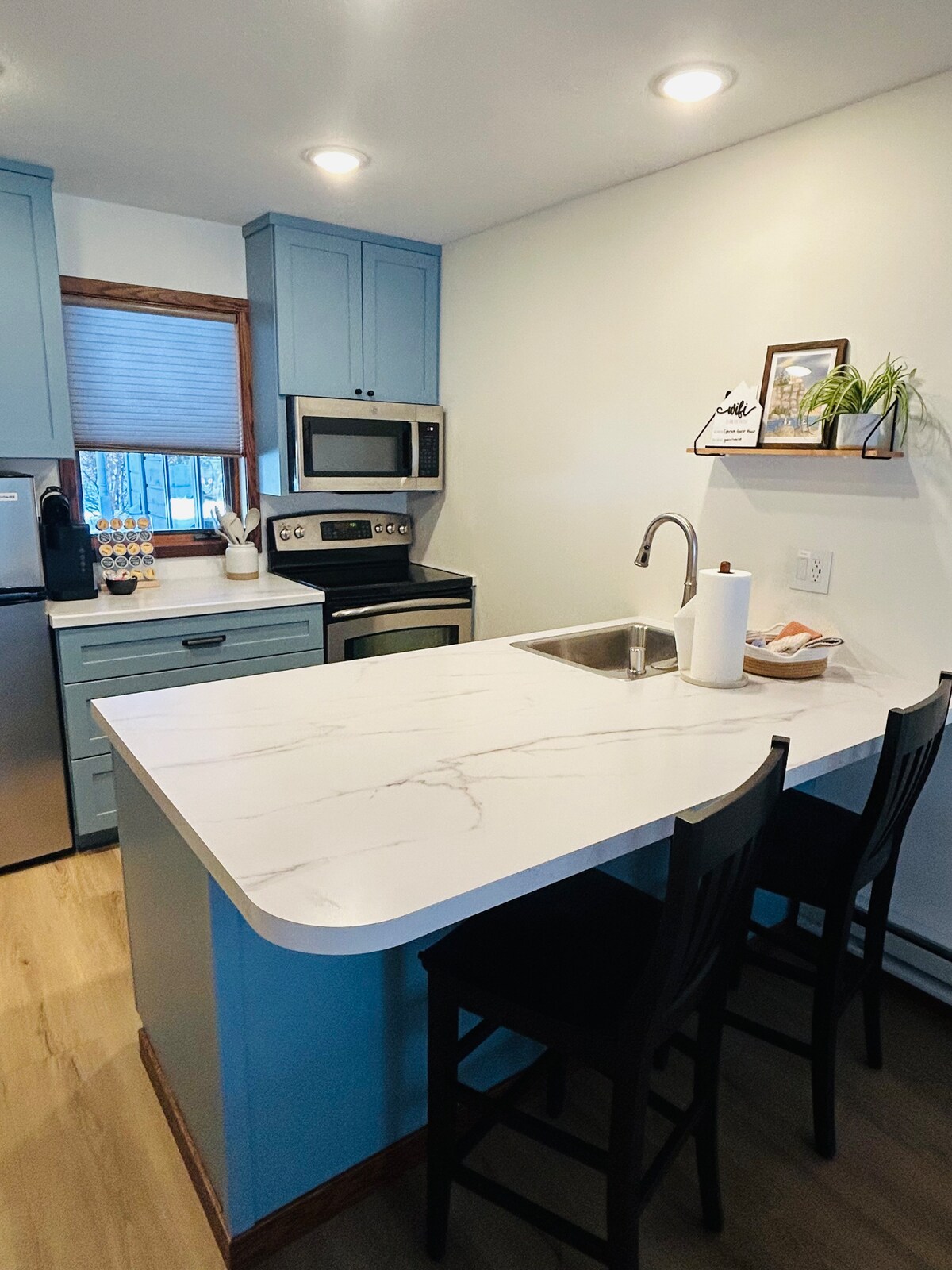 Retiro en el condado de Door en el corazón de Ephraim. Despiértate a unos pasos de la resplandeciente costa de Ephraim y de las mejores cafeterías, cafés y restaurantes del condado de Door. Este apartamento de un dormitorio recientemente renovado tiene capacidad para 4 personas, con una lujosa cama tamaño king, un cómodo sofá cama, wifi y una cocina completa, perfecto para parejas, familias pequeñas o amigos. Aparca una sola vez, ve a todas partes a pie y disfruta de tu escapada junto a la playa.