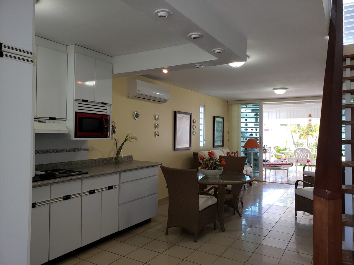 Propiedad frente a la playa a pocas yardas del océano ubicada en Villa Playa 1. Disfruta de la brisa del mar, las excelentes vistas y el sonido de las olas desde tu dormitorio o desde las terrazas delanteras/traseras. El complejo tiene una piscina y acceso directo a dos playas diferentes (ver imágenes). También hay una hermosa playa de arrecifes justo enfrente de la villa que es ideal para practicar esnórquel (solo en días tranquilos y con zapatos de agua) y surf en alta mar. El condominio se encuentra a pocos pasos de restaurantes y bares frente a la playa.