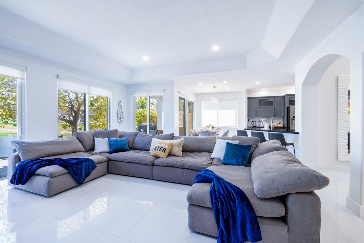 Come and create unforgettable memories in this modernly designed single-family home with a spacious layout and a range of comfortable bedrooms. It features two king-size beds, one queen-size bed, and a twin fold-up bed, as well as an Italian queen-size sofa bed. The house is bathed in natural light and boasts modern amenities that cater to your convenience. Located in a prime location, this house is close to all the tourist areas!! The pool is salt water with heater, Also a grill area