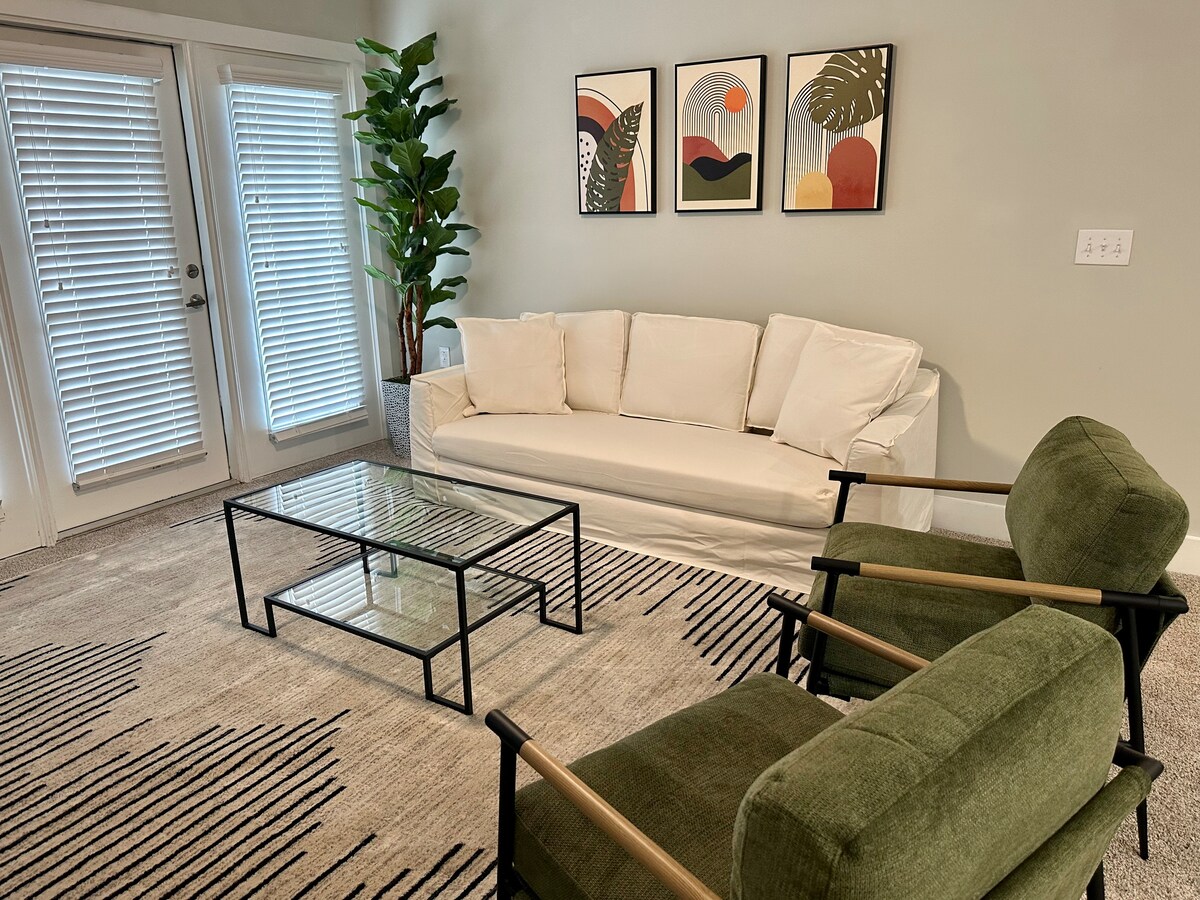¡Bienvenido al acogedor Nexton Cornerlight Retreat! Este elegante departamento de 2 dormitorios en el primer piso cuenta con un diseño abierto con una cama tamaño king, dos camas individuales, una ducha a ras de suelo, conexión Wi-Fi rápida, un televisor inteligente y una cafetera. Perfectamente ubicado a pocos minutos de la I-26 y a 20 minutos del centro histórico, tendrá fácil acceso a todo. Disfruta de opciones gastronómicas cercanas como Hall's Chop House, Vicious Biscuit y Pages Okra Grill. Ideal para viajes de negocios o escapadas familiares, ¡este es tu refugio perfecto!