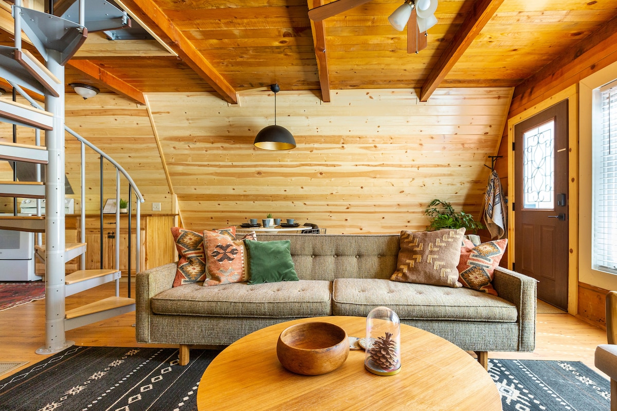 Como se muestra en Architectural Digest, la «Snug Shack» está situada en el centro de Arnold y ofrece acceso a lo mejor que la Sierra tiene para ofrecer, como catas de vino, tiendas, esquí y senderismo en el parque estatal Big Trees. La cabaña cuenta con wifi rápido para trabajar desde casa, una sala de estar de tamaño considerable, una cocina con un acogedor rincón para desayunar, dos dormitorios, incluido un dormitorio principal con cama tamaño king y un loft con dos camas individuales y una cama nido, y una terraza con mesa de picnic y barbacoa.