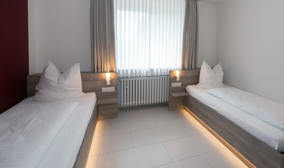 ¡Te damos la bienvenida al hotel ERSTAY en Dorsten! Nuestras habitaciones dobles recientemente renovadas te ofrecen todo lo necesario para una estancia cómoda. ¡Disfruta de tu estancia en nuestras acogedoras habitaciones de hotel equipadas en el Hotel ERSTAY!