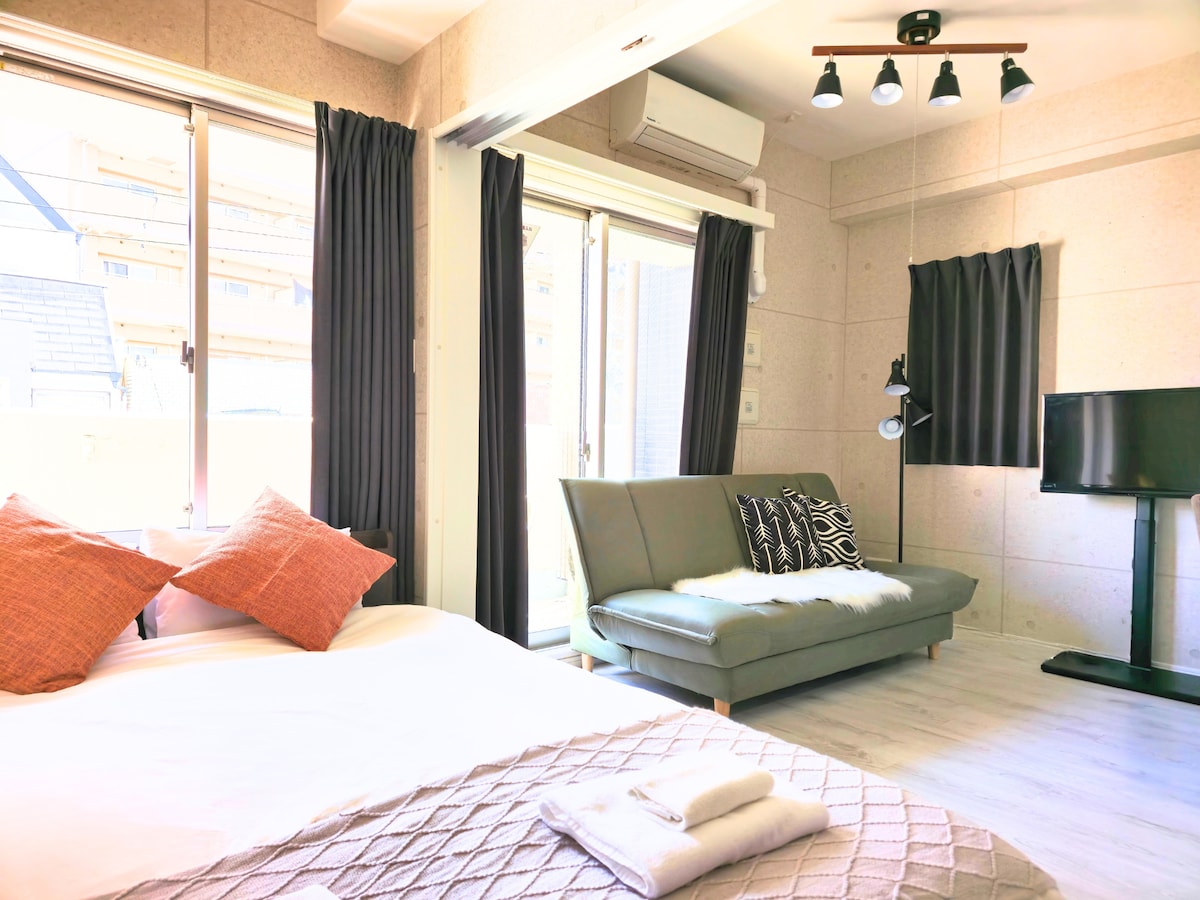 5 minutos a pie de la estación/2 bicicletas gratuitas/Namba 10 minutos/tienda de conveniencia a 1 minuto a pie/TV de 55'/cómodo sofá