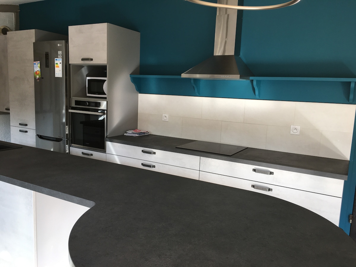 Cerca de la casa de los propietarios, será recibido en una casa en el corazón de la ciudad, que ofrece una gran variedad de tiendas. El alojamiento consta de tres habitaciones luminosas y agradables, una de ellas equipada con televisor. La cocina está totalmente equipada. El salón-comedor le permitirá reunirse en torno a un aperitivo o una comida. Una mesa y sillas de jardín están a su disposición en una terraza. Un aparcamiento privado te permite aparcar un coche de forma segura.