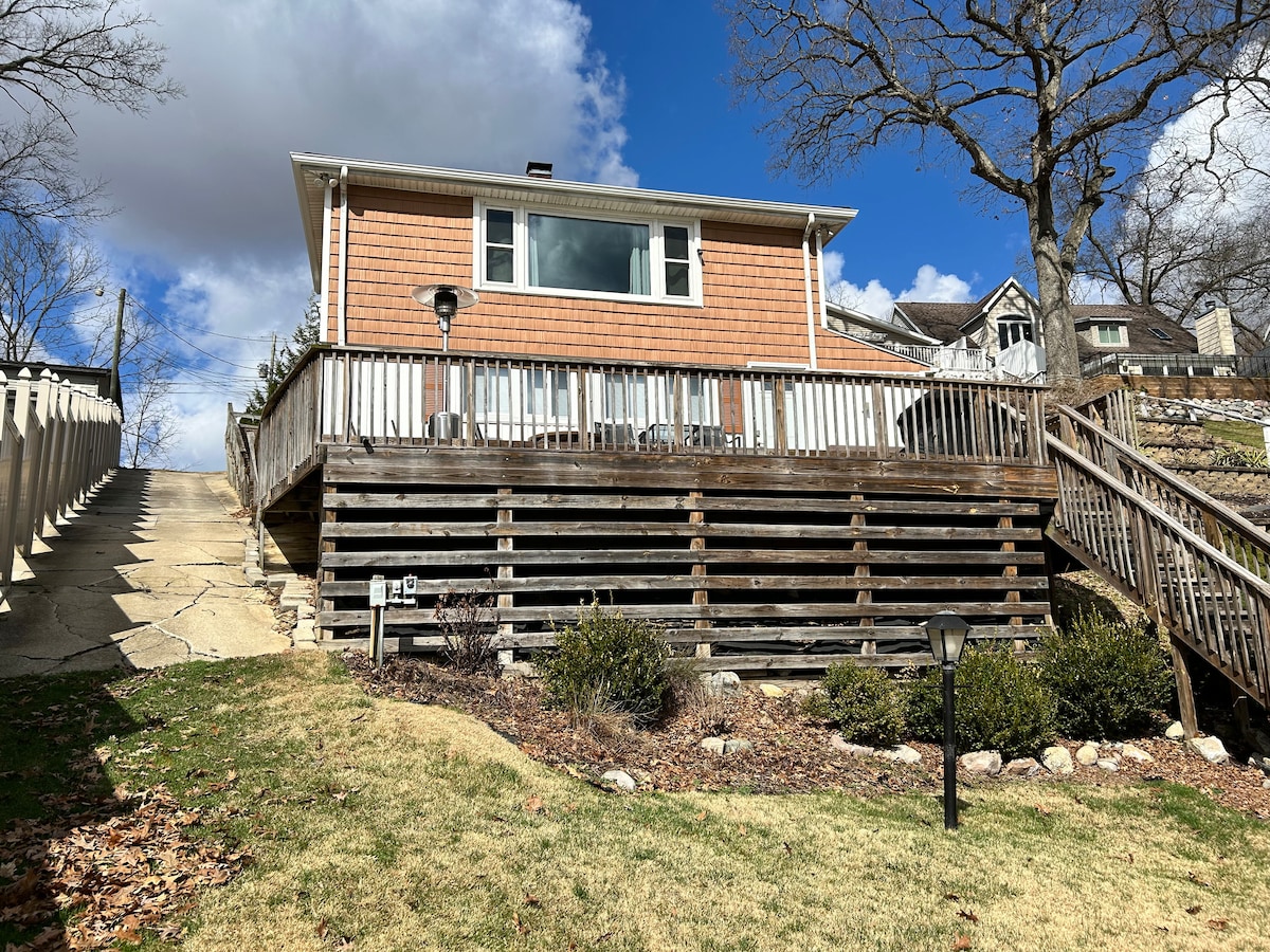 Aunt Betty's Lakeside Abode ofrece 3 dormitorios tamaño king, 2,5 baños, 2 camas individuales, hermosas vistas a Stone Lake orientadas al oeste, porche con mosquitero con fuego de gas, terraza junto al lago y jacuzzi durante todo el año. Disfruta de múltiples áreas de reunión, una ducha de vapor, ping-pong. Perfecto para familias, parejas o grupos que exploran el condado de LaPorte, Indiana Dunes o bodegas, cervecerías, senderos que rodean el lago Michigan. ¡Capacidad para 8 personas, o reserva con Uncle Larry's Lake Place al lado para grupos más grandes y diversión compartida frente al lago!