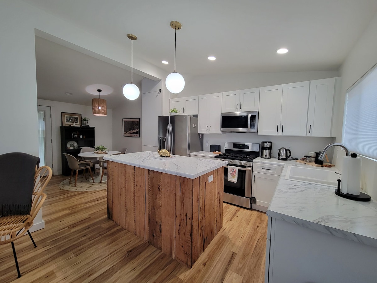 Preciosa casa de huéspedes ubicada a 3 manzanas al oeste del Capitolio del Estado, tiene 2 dormitorios y 1 baño en un plano de piso abierto, las comodidades incluyen encimera de granito en la cocina, gabinetes de diseño personalizado, baldosas de cerámica en el baño, sala de estar y cocina, chimenea eléctrica y TV arriba, el manto en la chimenea, cada uno de los 2 dormitorios tiene una cama tamaño king, puedes relajarte escuchando la cascada. ¡NUEVO, tenemos un conector de pared universal EV Nivel 2 para tu uso!