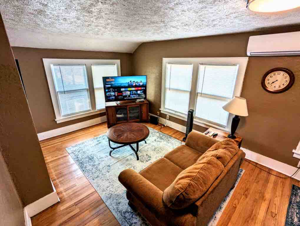 Experimenta el encanto de mediados de siglo con las comodidades modernas en este vibrante alojamiento de 1 dormitorio en Omaha. Los muebles elegantes y los colores vivos crean un espacio elegante y sofisticado. Cuenta con un sofá cama versátil, una cocina bien equipada, café de cortesía, lavandería en la unidad, TV inteligente, wifi de alta velocidad y un espacio de trabajo. Ideal tanto para viajeros de placer como de negocios, ubicado cerca de Midtown Crossings y Dodge Street. Disfruta de una estancia elegante y sin complicaciones en el corazón de la ciudad.