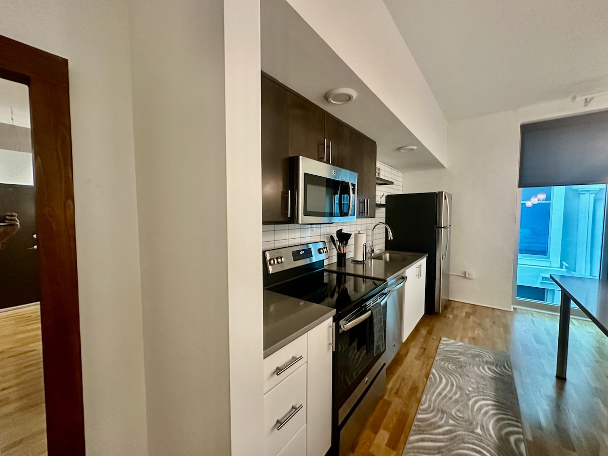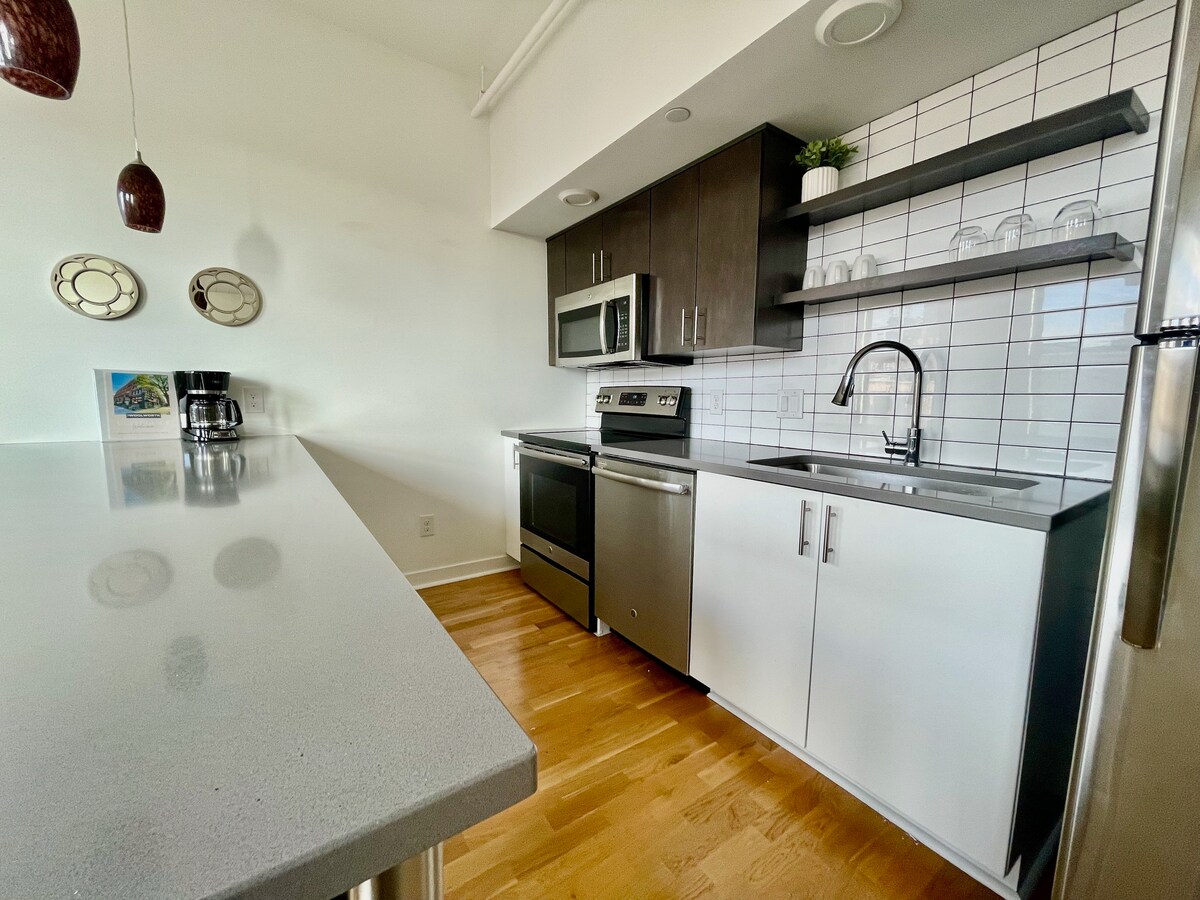 Apartamento de lujo en una pequeña comunidad, esta unidad tiene electrodomésticos de acero inoxidable, encimeras de granito y una planta abierta. Tenemos un gimnasio abierto las 24 horas, una cafetería abierta las 24 horas y, en los meses de verano, también se incluye una piscina de agua salada (apertura a finales de mayo para la temporada). También disponemos de una ubicación cómoda y fácil de encontrar. Esta unidad está en un 3er nivel - 2 tramos de escaleras (sin ascensor).