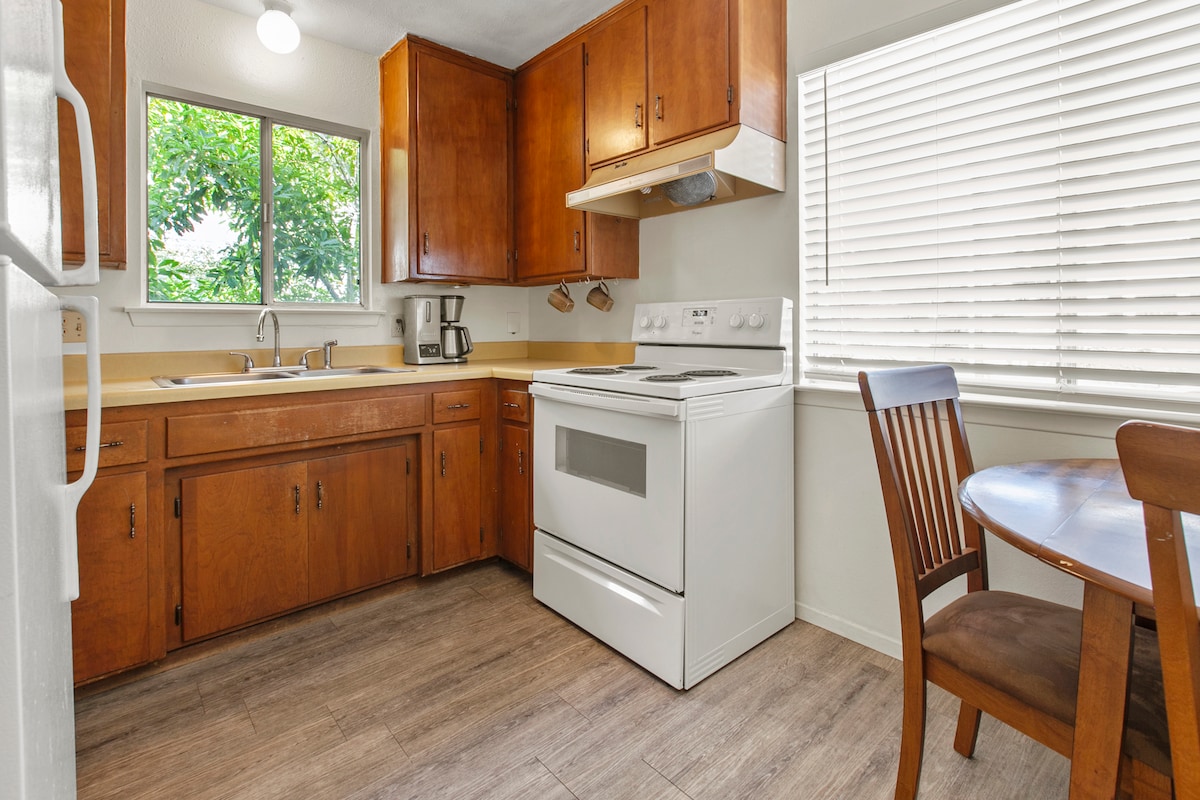 Estudio privado con su propia entrada ubicado en la encantadora SLO. Incluye una cama tamaño queen Murphy (la gente elogia la comodidad de esta cama), baño de 3 piezas, mesa y dos sillas, escritorio, armario, TV, wifi y cocina americana. Se proporcionan café, té con accesorios. A 4 manzanas del centro cultural, restaurantes de moda, Farmer's Market, la Misión Histórica y más. La región vinícola de Edna Valley está a 5 minutos y la playa a 10 minutos. ¡La ubicación perfecta para venir a experimentar la «vida SLO»!