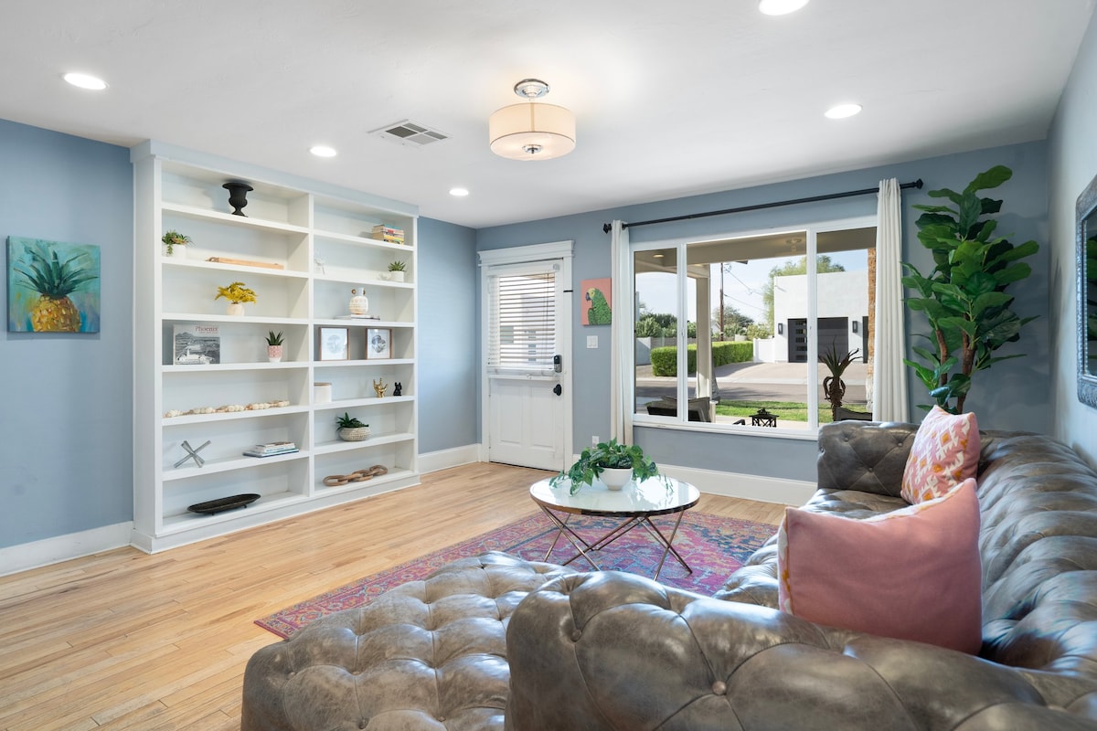 Ubicación 🌵 perfecta: a pie de los bares, tiendas y restaurantes del casco antiguo 🚎 Fácil transporte: parada de tranvía gratuita cerca Patio trasero☀️ privado: vallado, perfecto para perros 🛏 Espacio para relajarse: 2 dormitorios, 2 salones y una decoración elegante Cocina 🍽 equipada: cocina y cena con facilidad ⛰ Explora AZ: cerca de Camelback, Papago, golf y ruta ciclista Estacionamiento 🚗 sin complicaciones: entrada para 4 autos Nuestro agradable barrio ofrece encanto local, seguridad y fácil acceso a los restaurantes, tiendas y vida nocturna del casco antiguo.