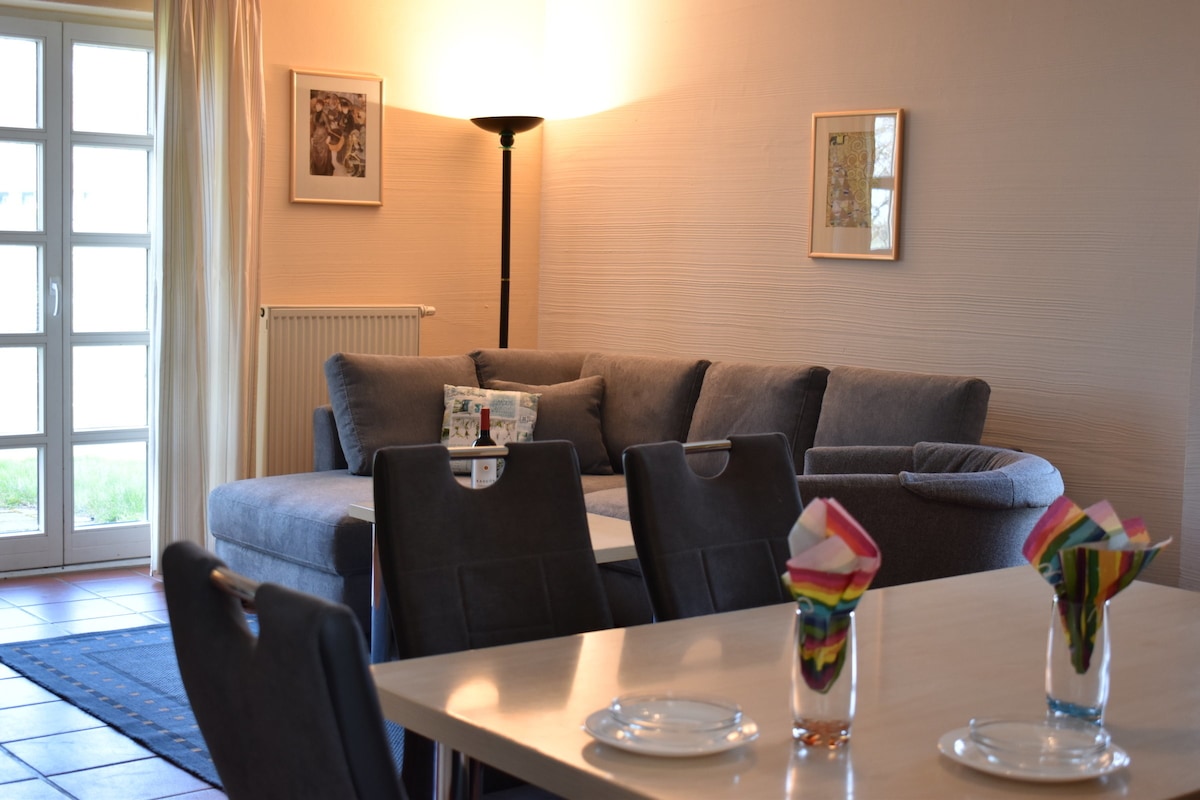 *47 qm Apartment in erster Reihe mit Naturteich, großen Garten, Sauna mit traumhaften Meerblick *seitlicher Balkon mit Meerblick *Schlafcouch 153x240 *Wohn- & Essbereich *Kamin ohne Holz *WLAN *Fußbodenheizung *Linoleum Fußboden *Plissees in allen Räumen *bodenebene Dusche *voll ausgestattete Küche mit Toaster, Wasserkocher, Kaffeevollautomat, Mikrowelle *Ultra HD Smart TV im Wohn- & Schlafzimmer *Boxspringbett 180x200 *kostenloser Parkplatz *inkl. Wäschepaket *zzgl. Kurkartengebühren