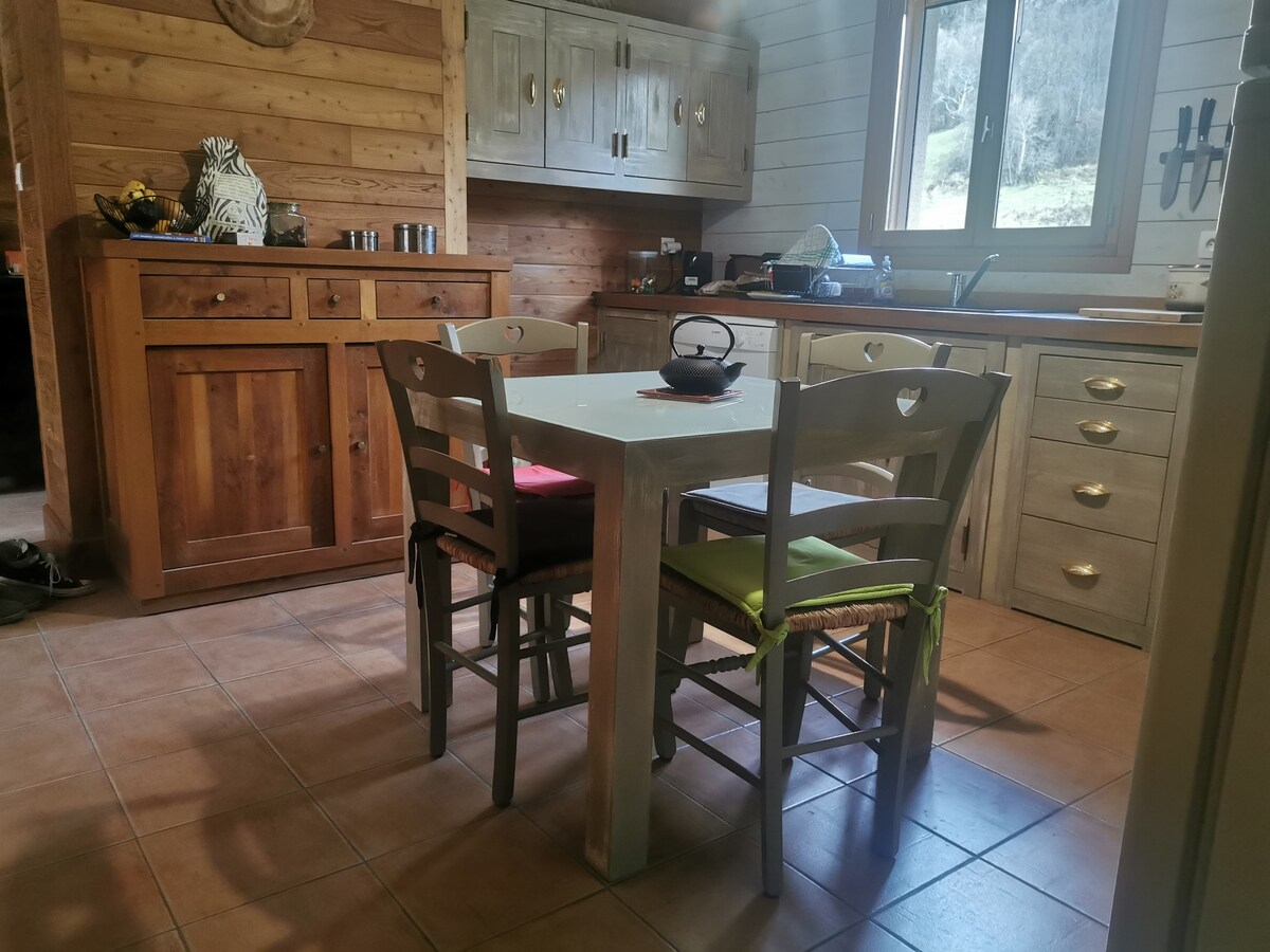 Bienvenido a una casa privada serena situada dentro de los Pirineos medios rodeada de espectaculares vistas a la montaña y al bosque. Despierta con el sonido de los pájaros mientras disfrutas de las amplias vistas verdes que ofrecen los amplios árboles orgánicos, los jardines orgánicos y el paisaje cubierto de hierba. Tómate una taza de té, café o disfruta de una copa de vino francés local mientras te sientas en la terraza. Explora el campo con nuestros muchos senderos para caminar y andar en bicicleta. Renueva tu espíritu en esta casa cómoda enclavada en la naturaleza.