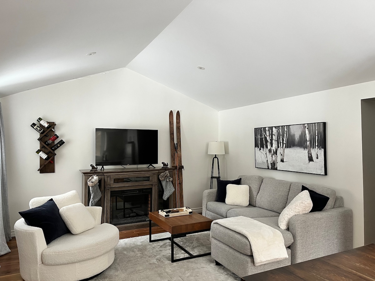 Bienvenido a Triangle House, una cabaña de estilo alpino única situada en un terreno privado de 1,7 acres, frente al río Conestogo. A solo 6 minutos en coche del centro de St. Jacobs, a 1,5 horas en coche de Toronto, a 15 minutos en coche de la Universidad de Waterloo y a 25 minutos de Elora. Ideal para familias. Esta casa de 3 dormitorios y 3 baños tiene capacidad para 6 personas. Sumérgete en el campo desde la amplia terraza y los jardines, mientras disfrutas de todas las comodidades de una casa moderna.